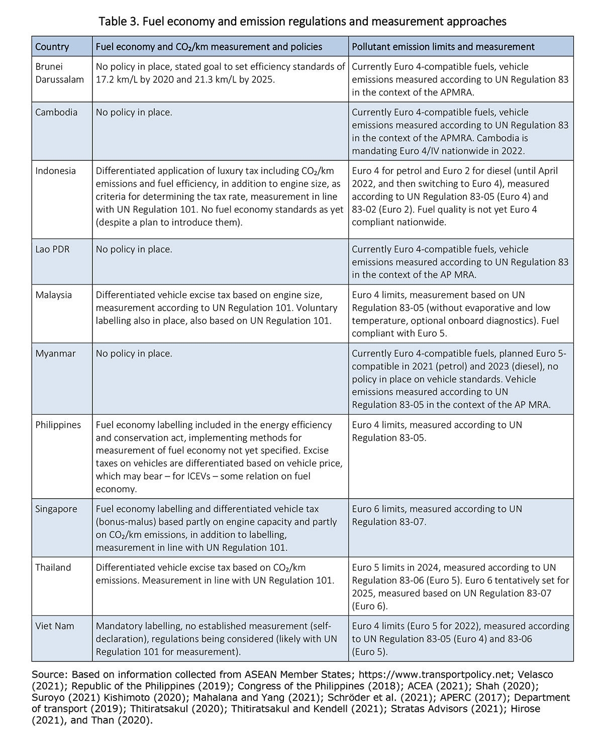- Include low- and zero-emission vehicles in the ASEAN fuel economy roadmap